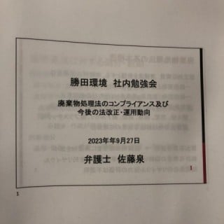 イベントニュース社内勉強会 イベントニュース社内勉強会 社内勉強会 2023年9月27日 2023年9月27日(水)に『廃棄物処理法のコンプライアンス及び今後の法改正・運用同動向』 に関する社内勉強会を実施しました。法令順守はもちろんのこと、リサイクルの促進に力を注ぎます。 関連カテゴリー 磯崎自治会主催 「心と体の健康増進Fes.」 イベントニュース 2025年10月5日 新人指導員 イベントニュース 2025年9月22日 スカニア(外車トラック)購入について イベントニュース 2025年8月20日 BBQ イベントニュース 2025年8月8日 その他の記事 磯崎自治会主催 「心と体の健康増進Fes.」 新人指導員 スカニア(外車トラック)購入について BBQ 還暦(定年)祝い もっとロードする