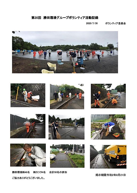 イベントニュース第20回勝田環境グループボランティア清掃 イベントニュース第20回勝田環境グループボランティア清掃 第20回勝田環境グループボランティア清掃 2020年7月30日 2020年7月30日(木)の早朝に勝田環境の社員46名、グループ会社の社員4名、合計50名で勝田環境RC事業所周辺の道路と高野墓地の清掃を行いました。 関連カテゴリー 磯崎自治会主催 「心と体の健康増進Fes.」 イベントニュース 2025年10月5日 新人指導員 イベントニュース 2025年9月22日 スカニア(外車トラック)購入について イベントニュース 2025年8月20日 BBQ イベントニュース 2025年8月8日 その他の記事 磯崎自治会主催 「心と体の健康増進Fes.」 新人指導員 スカニア(外車トラック)購入について BBQ 還暦(定年)祝い もっとロードする