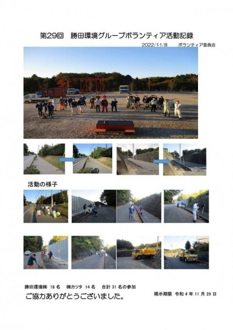 2022年11月8日(火)の早朝に勝田環境の社員18名、グループ会社の社員14名、合計32名で勝田環境RC事業所周辺の道路と高野墓地の清掃を行いました。