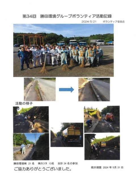 イベントニュース第34回勝田環境グループボランティア清掃 イベントニュース第34回勝田環境グループボランティア清掃 第34回勝田環境グループボランティア清掃 2024年5月21日 2024年5月21日(火)の早朝に勝田環境の社員21名、グループ会社の社員13名、合計34名で勝田環境RC事業所周辺の道路と高野墓地の清掃を行いました。 関連カテゴリー 磯崎自治会主催 「心と体の健康増進Fes.」 イベントニュース 2025年10月5日 新人指導員 イベントニュース 2025年9月22日 スカニア(外車トラック)購入について イベントニュース 2025年8月20日 BBQ イベントニュース 2025年8月8日 その他の記事 磯崎自治会主催 「心と体の健康増進Fes.」 新人指導員 スカニア(外車トラック)購入について BBQ 還暦(定年)祝い もっとロードする