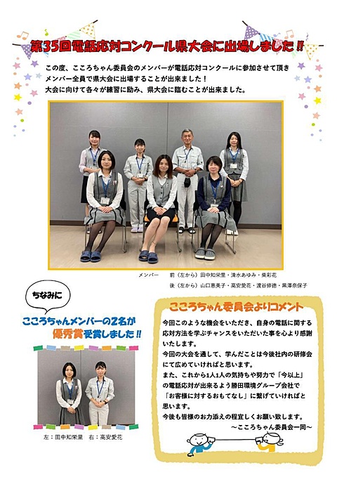 イベントニュース第35回電話対応コンクール茨城県大会にて優秀賞を受賞しました。 イベントニュース第35回電話対応コンクール茨城県大会にて優秀賞を受賞しました。 第35回電話対応コンクール茨城県大会にて優秀賞を受賞しました。 2021年9月29日 2021年9月29日(水)におこなわれた第35回電話対応コンクール茨城県大会にて優秀賞を受賞しました。 関連カテゴリー 磯崎自治会主催 「心と体の健康増進Fes.」 イベントニュース 2025年10月5日 新人指導員 イベントニュース 2025年9月22日 スカニア(外車トラック)購入について イベントニュース 2025年8月20日 BBQ イベントニュース 2025年8月8日 その他の記事 磯崎自治会主催 「心と体の健康増進Fes.」 新人指導員 スカニア(外車トラック)購入について BBQ 還暦(定年)祝い もっとロードする
