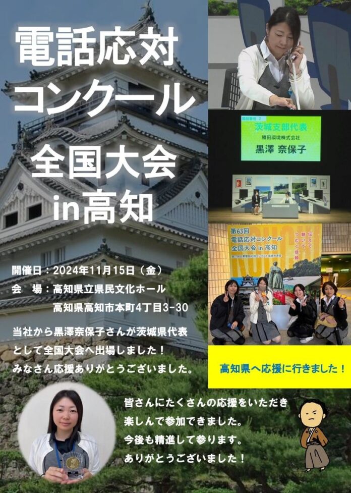 イベントニュース電話応対コンクール全国大会in高知出場 イベントニュース電話応対コンクール全国大会in高知出場 電話応対コンクール全国大会in高知出場 2024年11月3日 2024年11月15日(金)に高知県立県民文化ホールにて電話応対コンクール全国大会が開催され、弊社から茨城県代表で1名が出場しました。コンクールの様子やインタビューがNHK高知放送局で放映されました。 関連カテゴリー 磯崎自治会主催 「心と体の健康増進Fes.」 イベントニュース 2025年10月5日 新人指導員 イベントニュース 2025年9月22日 スカニア(外車トラック)購入について イベントニュース 2025年8月20日 BBQ イベントニュース 2025年8月8日 その他の記事 磯崎自治会主催 「心と体の健康増進Fes.」 新人指導員 スカニア(外車トラック)購入について BBQ 還暦(定年)祝い もっとロードする