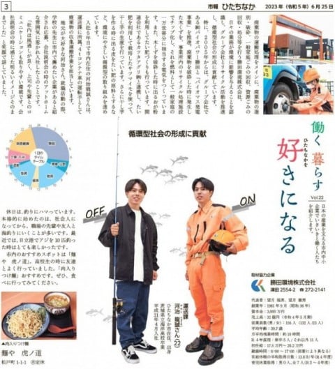 掲載メディア2023.06.25 ひたちなか市市報 掲載メディア2023.06.25 ひたちなか市市報 2023.06.25 ひたちなか市市報 2023年6月25日 2023年6月25日のひたちなか市の市報にて勝田環境の新人が紹介されました。 掲載内容はこちら 関連カテゴリー 2025.07.10 日本工業新聞 掲載メディア 2025年7月10日 2025.07.05 茨城新聞 掲載メディア 2025年7月5日 2024.06.04 茨城新聞 掲載メディア 2024年6月4日 2021.11.08 週刊循環経済新聞 掲載メディア 2021年11月8日 その他の記事 2025.07.10 日本工業新聞 2025.07.05 茨城新聞 2024.06.04 茨城新聞 2021.11.08 週刊循環経済新聞 2021.06.01 常陽産研NEWS もっとロードする