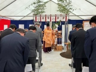 この重要な儀式である「地鎮祭」は、土地の神様に対して、工事の順調な進行や安全な施工、そして会社の繁栄を祈るものです。多くの関係者や従業員が心をひとつにし、この新たなる事業の成功を祈願しました。